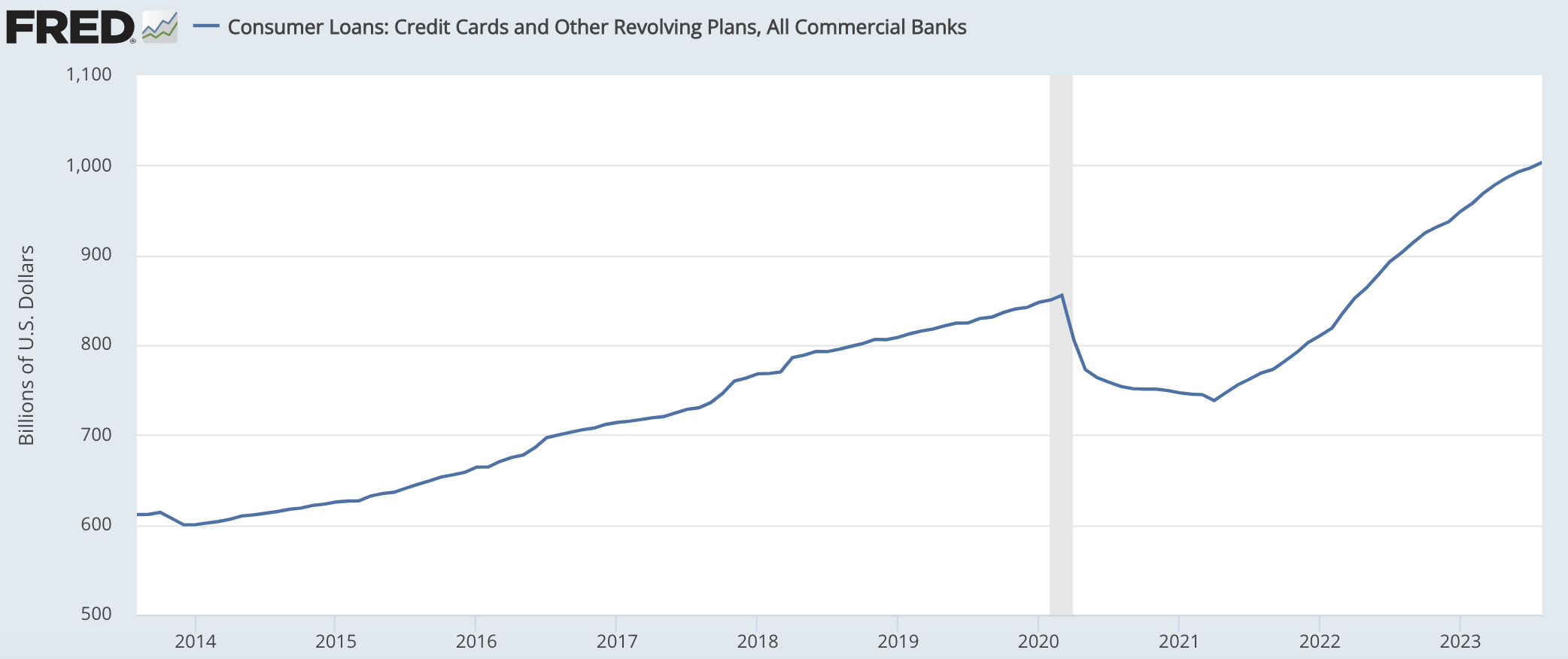 This supports my view that what we have seen is a “great normalization” of credit activity. COVID and government stimulus led to significant deleveraging and after nearly four years, we have essentially returned to exactly where we were, which was a pretty healthy place. Accordingly, delinquencies and defaults should naturally rise back to 2019 levels—this is not cause for concern of ever-spiraling increases, but rather a return to more normal levels.