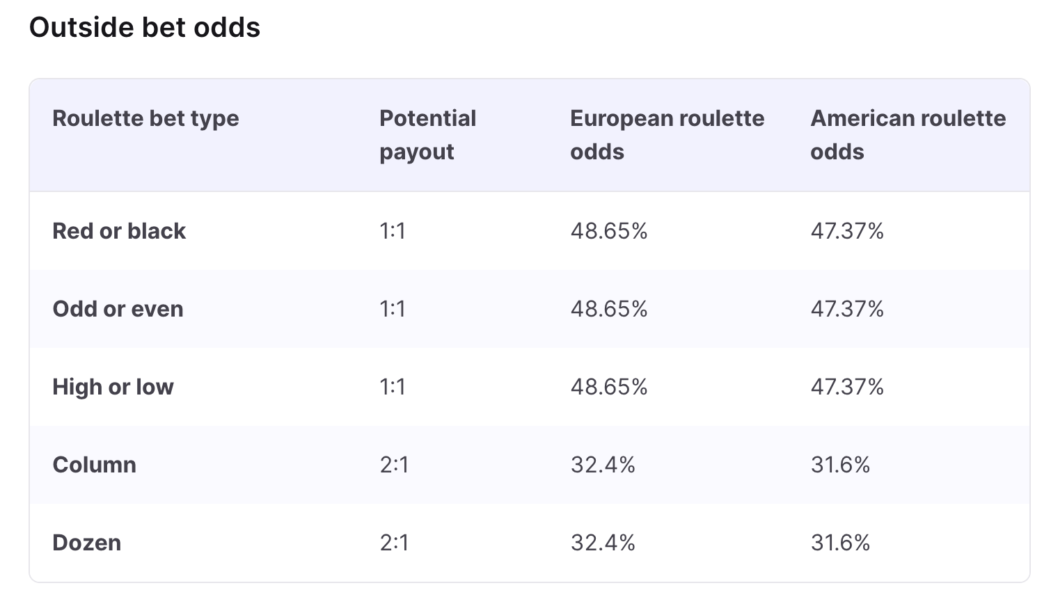 To give you an example, according to Casino.org, the biggest chance of winning at roulette is betting on a color or an even/uneven number. These chances are 47.4%. This means that bettors can go home with a profit if they play just a few games.