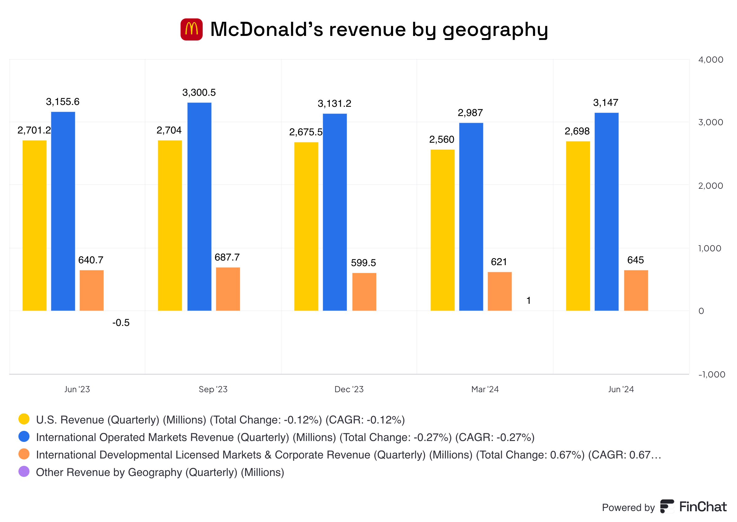 McDonald’s has a strong domestic business with the company generating more than 40% of its second-quarter revenue from its U.S. operations. The company, since its founding more than 80 years ago, has maintained a strong brand perception among American consumers as their go-to fast-food joint.