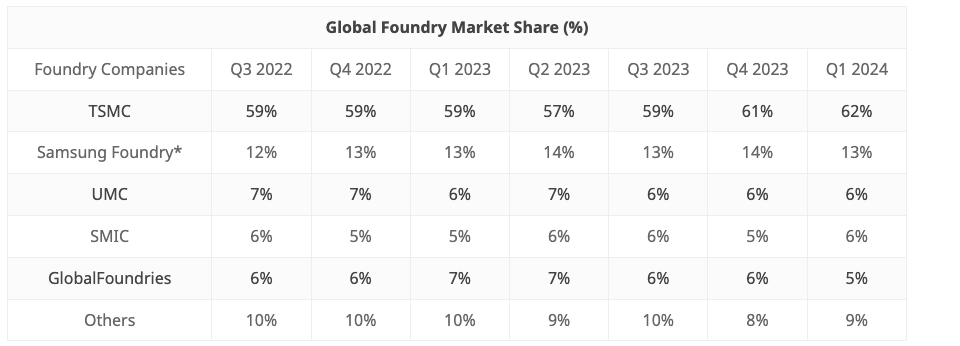 - As a market leader with 62% share, it has the most advanced technological process leadership.