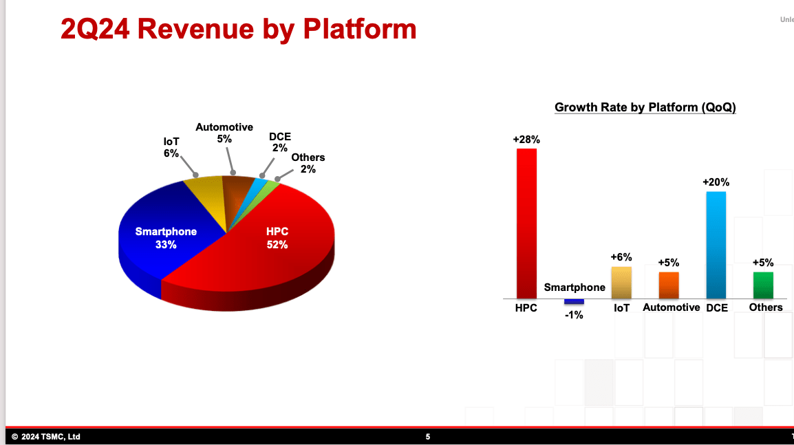 TSMC revenue by technology Q2-23 (TSMC) TSMC revenue by platform Q2-24 (TSMC)