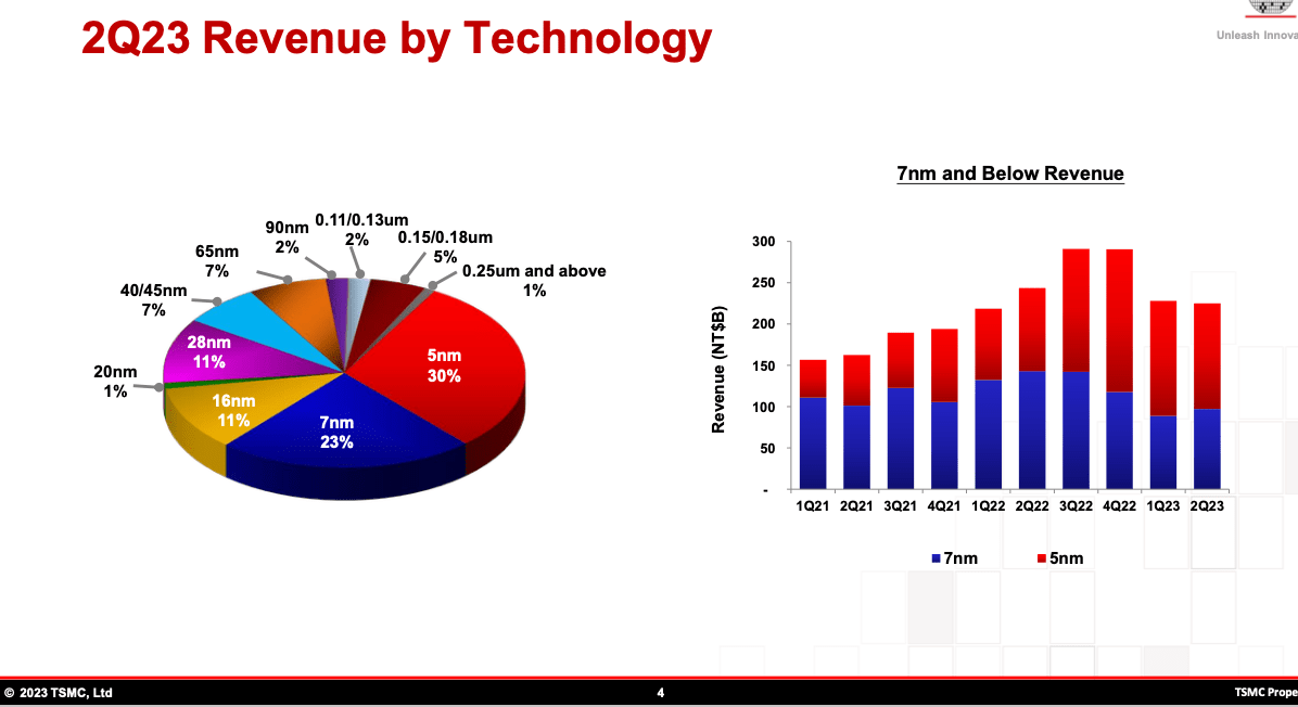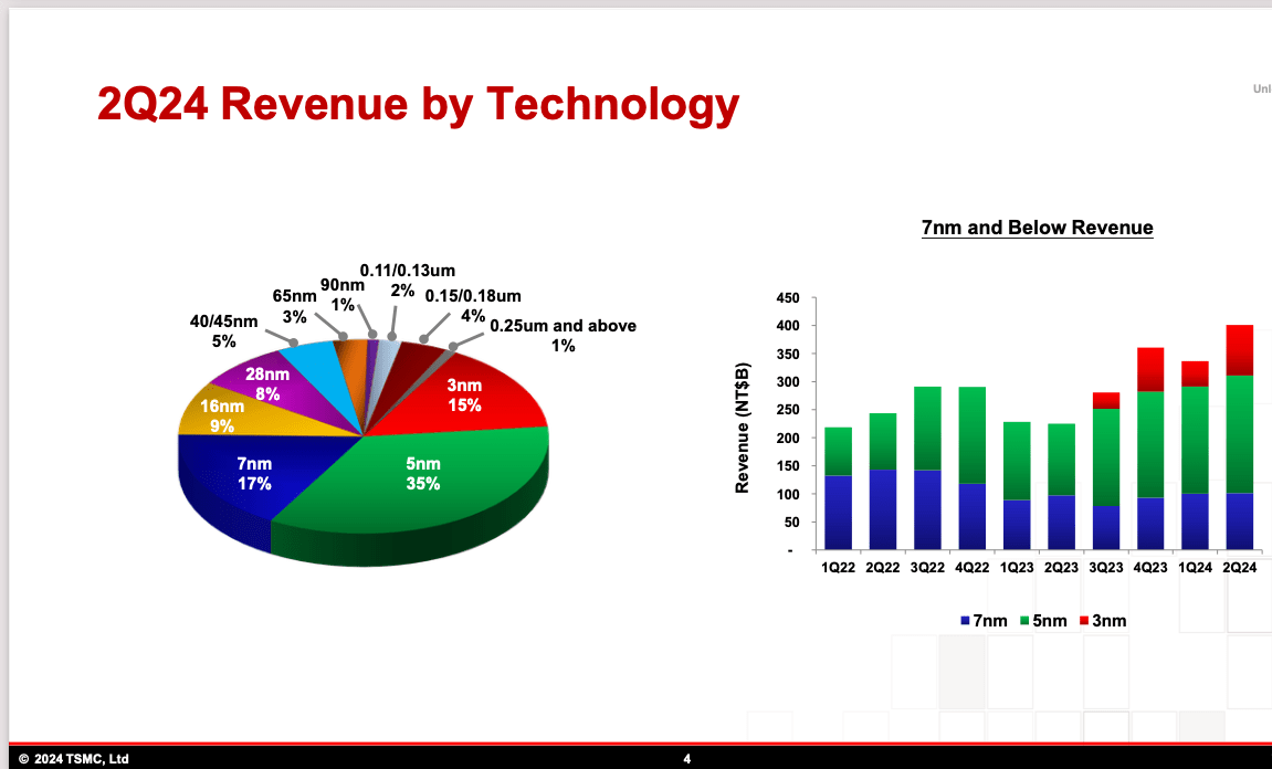 As we can see from the chart above, 3nm has already climbed to 15% of revenue, from 0 last year, and 5nm has moved from 30% to 35% this year. The two most advanced nodes take up 50% of revenue. Similarly, last year, the two most advanced nodes, 5nm and 7nm, took up 53%. TSMC is constantly moving up the value chain, probably in 2025 or 2026 you would see 2nm and 3nm occupying more than 50% and so on…And they keep raising prices as they go along.