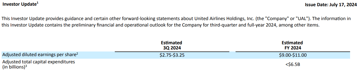 In terms of guidance, United Airlines does not provide a lot other than EPS and capex. The only thing that we can see is that the EPS guidance of $2.75-$3.25 for the third quarter falls materially short of the $3.36 that analysts are expecting. It’s a guidance we cannot do a lot with other than noting that United Airlines has only missed analyst estimates once over the past eight quarters and the $9.76 consensus for the full year still falls within the guided range.