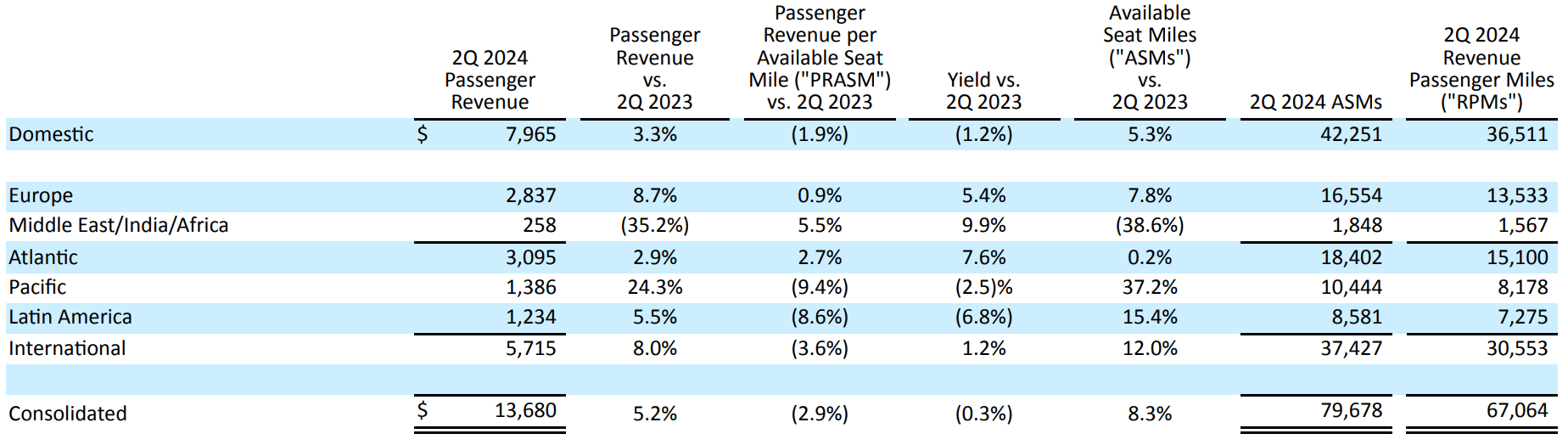 - Q2 earnings show revenue growth falling short of capacity growth, leading to margin contraction.