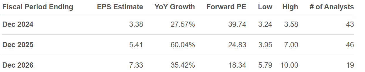 The chart below shows the company’s guidance for the third quarter of 2024. If the company hits its revenue guidance of $6.7 billion, it will produce revenue growth of 15.51% year over year, slightly above analysts’ estimates.