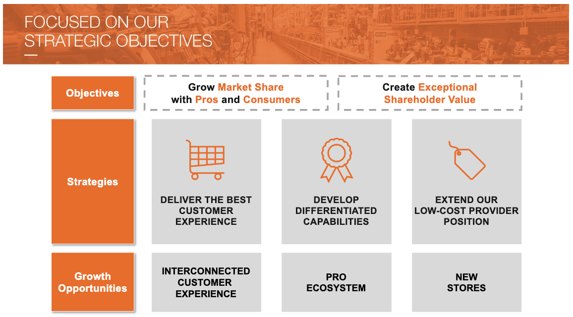 To fuel growth, it builds on these measures by improving the customer experience, investing in PRO capabilities, and opening new stores.