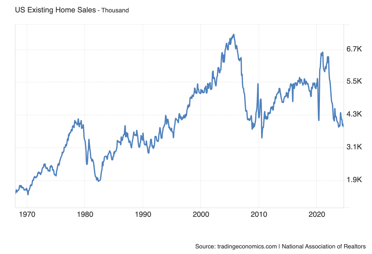 The problem is that elevated home equity benefits are being offset by the impact of elevated rates on the housing market. Because of elevated rates, people are not selling their homes.