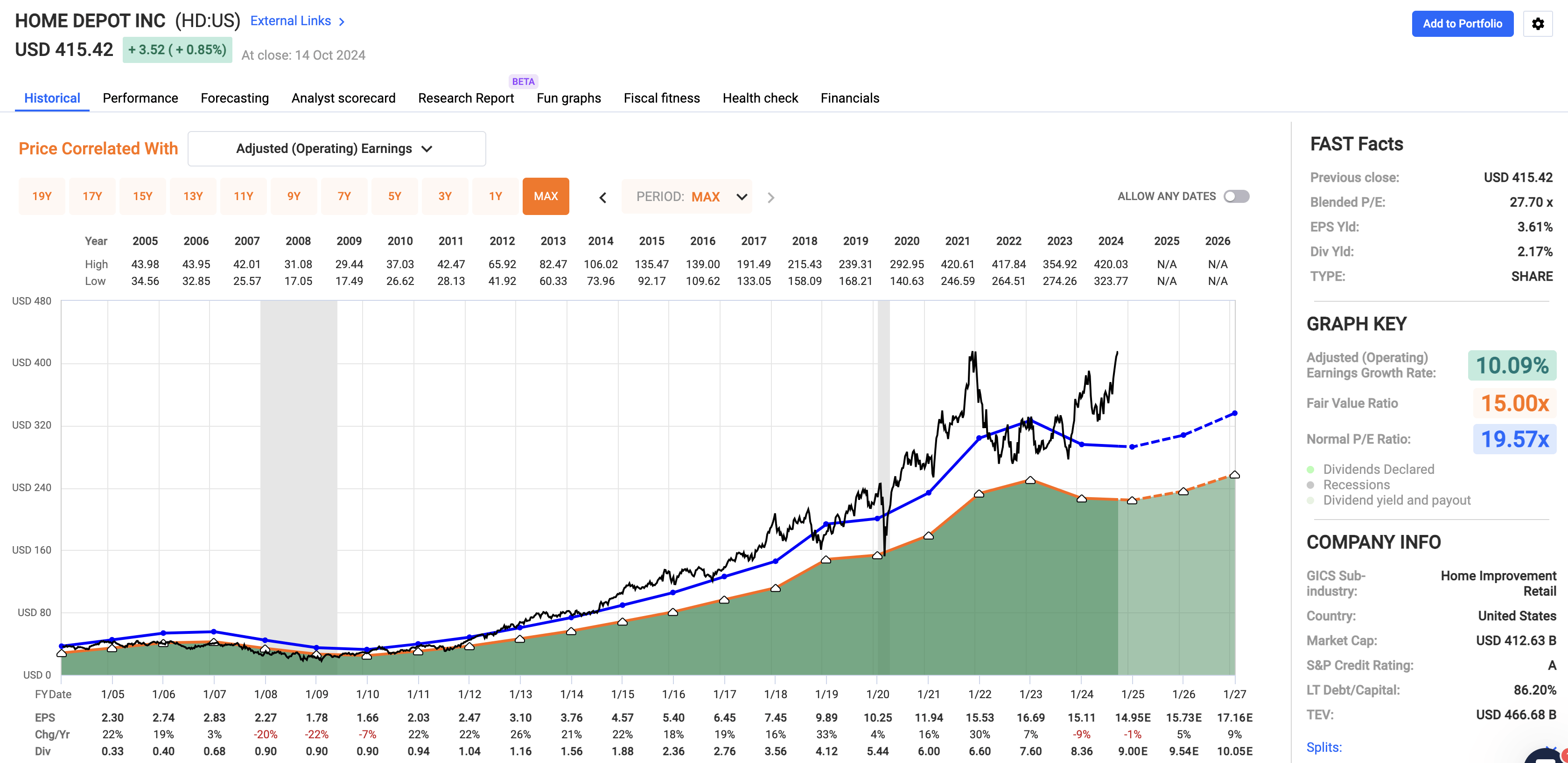 Morningstar even assigns a “wide moat” rating, making Home Depot one of the very few consumer stocks with a wide moat – most do not even have a small moat.