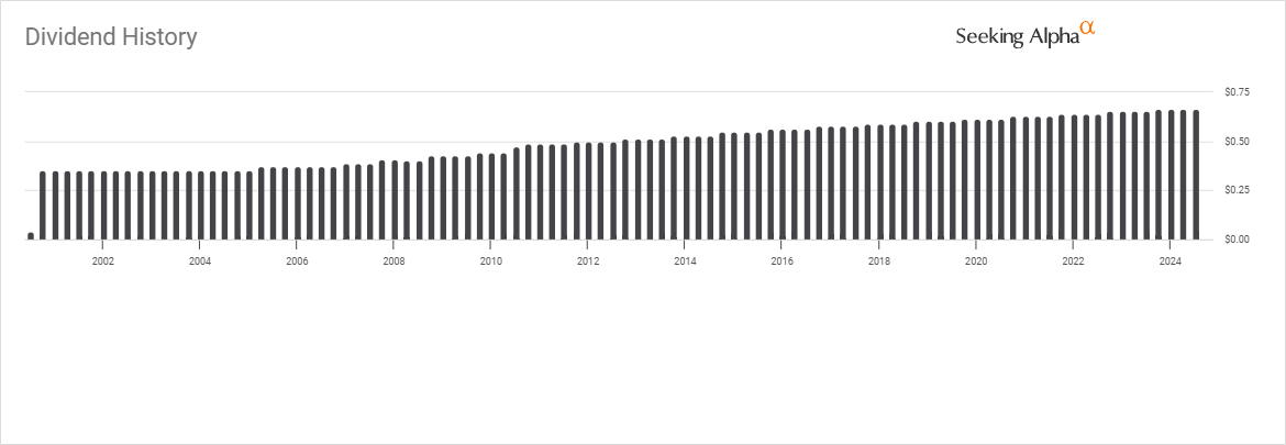 Though the growth has been quite modest, being at only a 2.3% CAGR over the last decade, it has been consistent. For investors that aren’t using the income to live on for expenses, one can create their own growth as well by reinvesting all or a portion of the dividend received. While shares are at a lower price is actually even more ideal for investors being able to be in that situation.