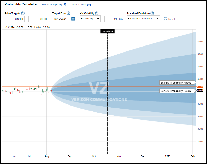 - Second: Sell to Open Verizon (VZ) October 18, 2024 expiration, $42 Calls – collected $0.74