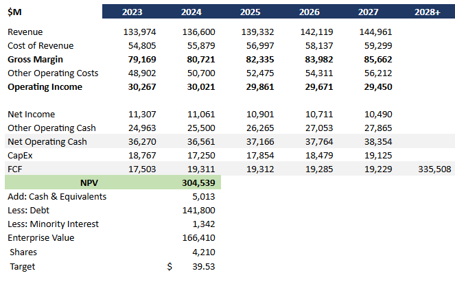 This DCF analysis yields a price target of $39.53, down from today’s pricing, although still providing a sizeable dividend.