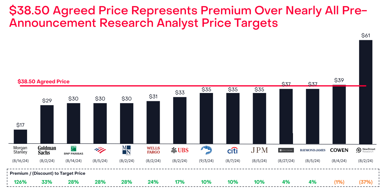 The deal was also a premium to 12 out of 14 analyst estimates prior to the deal announcement.