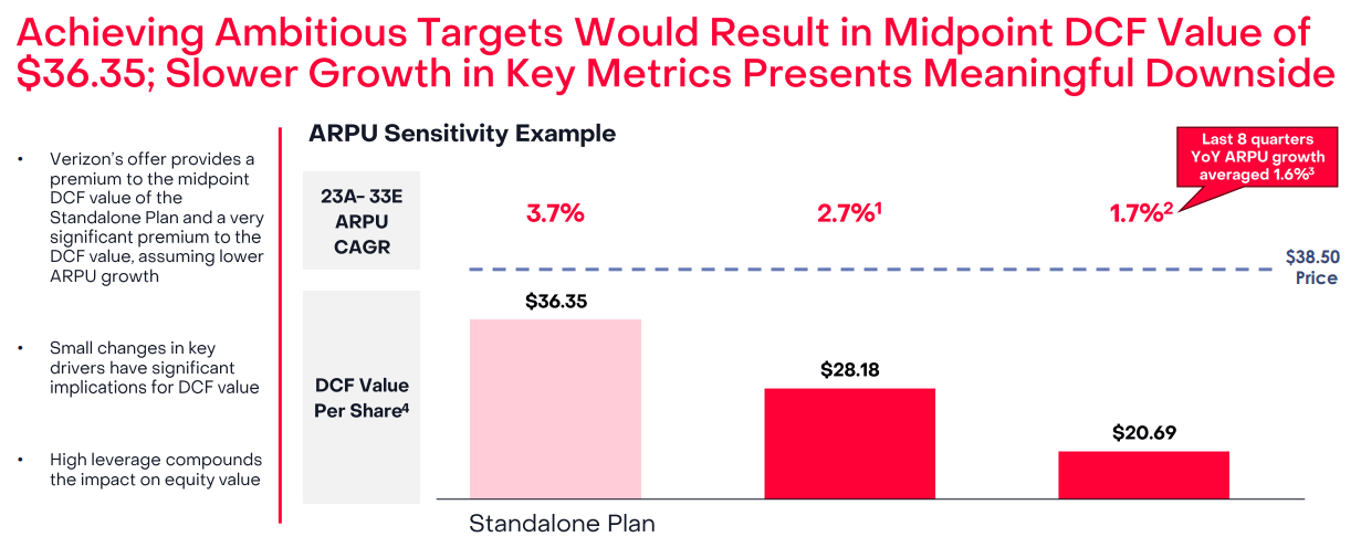 Verizon on the other hand will be weighed down with more debt, and a business that still isn’t growing fast enough. They admit in the offer that it will not be EPS accretive until 2027 at the earliest. Verizon has a very poor track record with M&A, with their big deals almost always decreasing shareholder value.