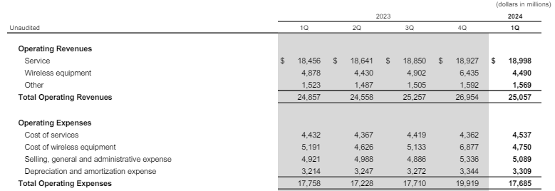 In addition, the cost of wireless equipment relative to revenue continues to grow, signaling that Verizon has to cover more and more devices to maintain customers.