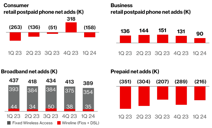 Verizon is rapidly losing subscribers on both its postpaid and prepaid plans, while T-Mobile (TMUS) and AT&T (T) grow.