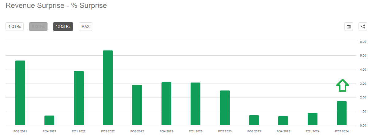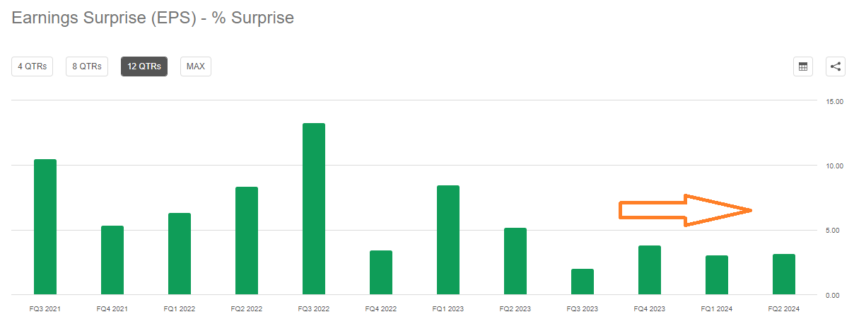 That is why we didn’t see a jump in the quarterly earnings per share surprise to the same extent we saw with revenues above.