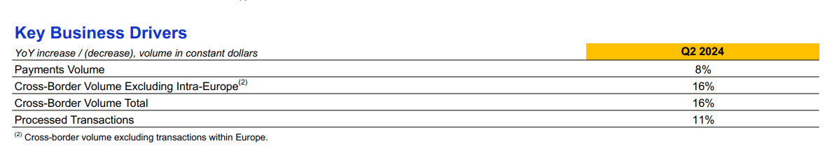 Growth in the high-margin cross-border volumes has also remained elevated, coming at 16% during the last reported quarter.