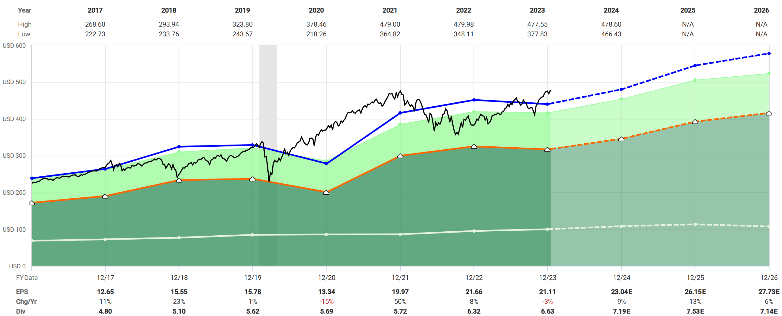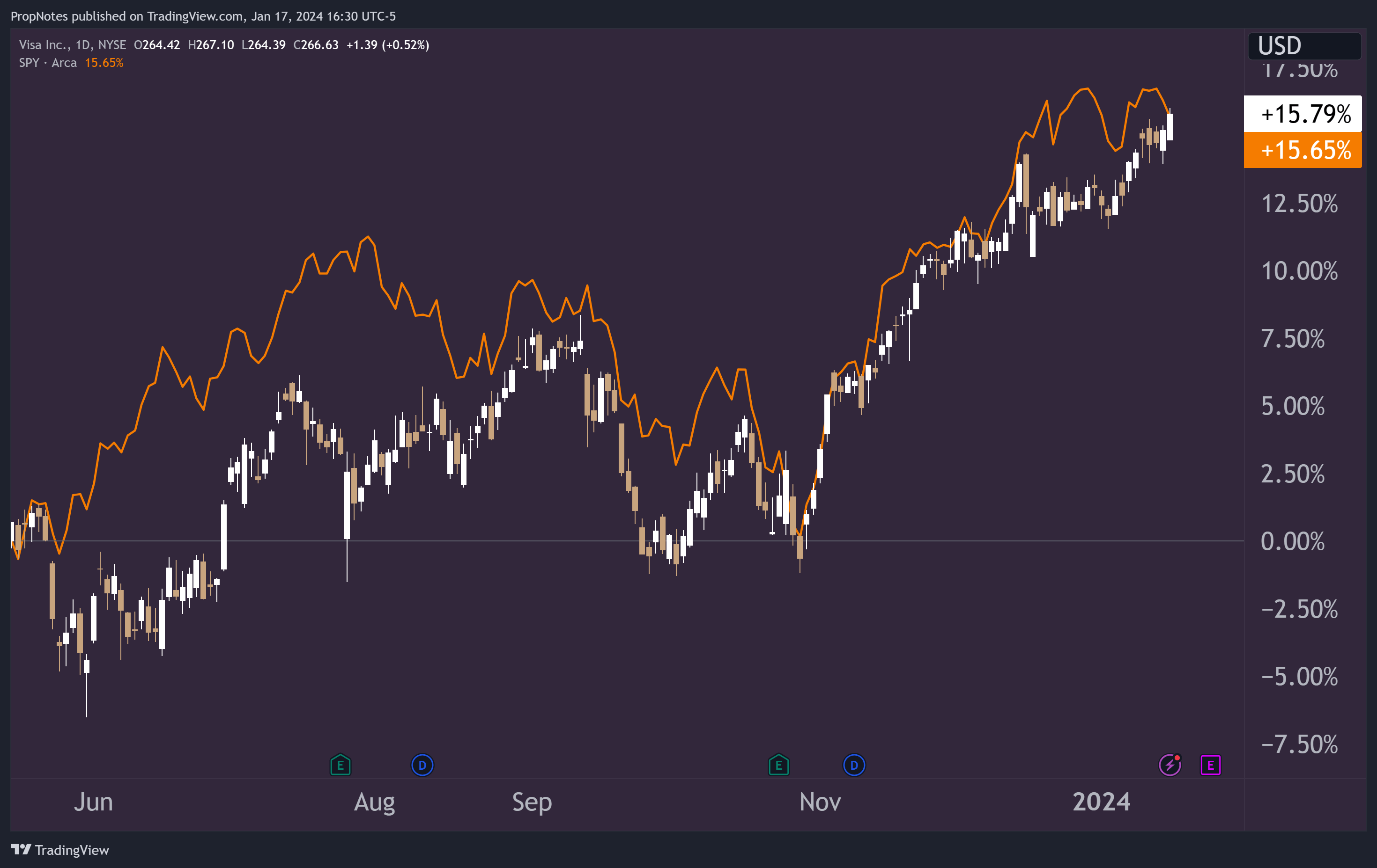 • Visa’s stock has performed well, outpacing the S&P 500, and still appears reasonably priced.