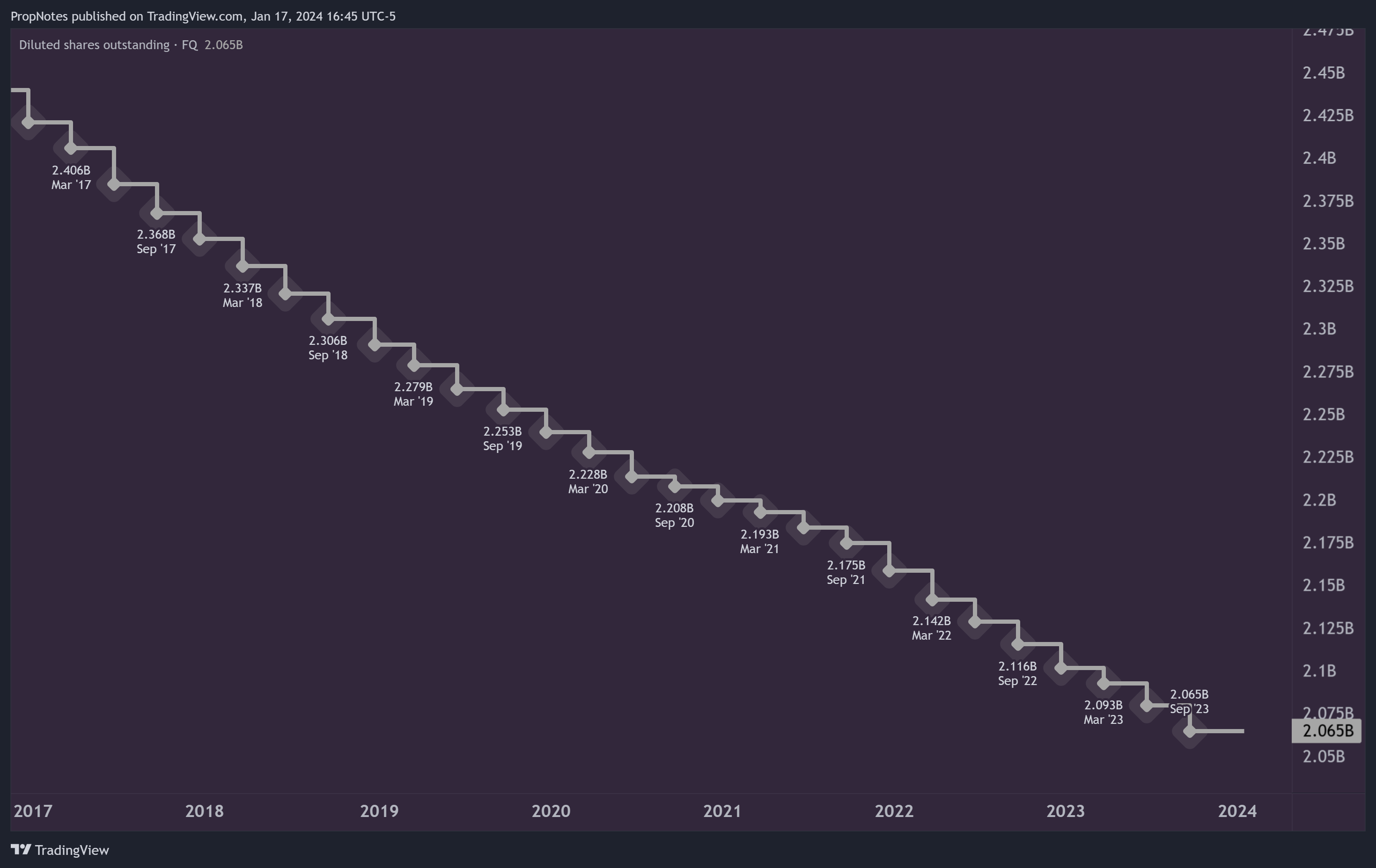 • The company has shown strong financial growth, with increasing revenue and free cash flow, and management continues to buy back shares.