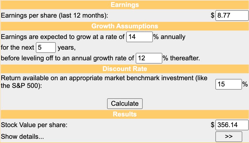 Using the Discounted Cash Flow Model, this gives me a fair value of $356. Looking at estimates for the next few years, the stock is expected to grow double-digits at an average of 14% per year. Seeing as how they are a high growth stock, I think it’s only right the company will continue growing at a rapid pace. Do I think the share price can get near or surpass here? I think so, especially if rates decline and a bull market begins.