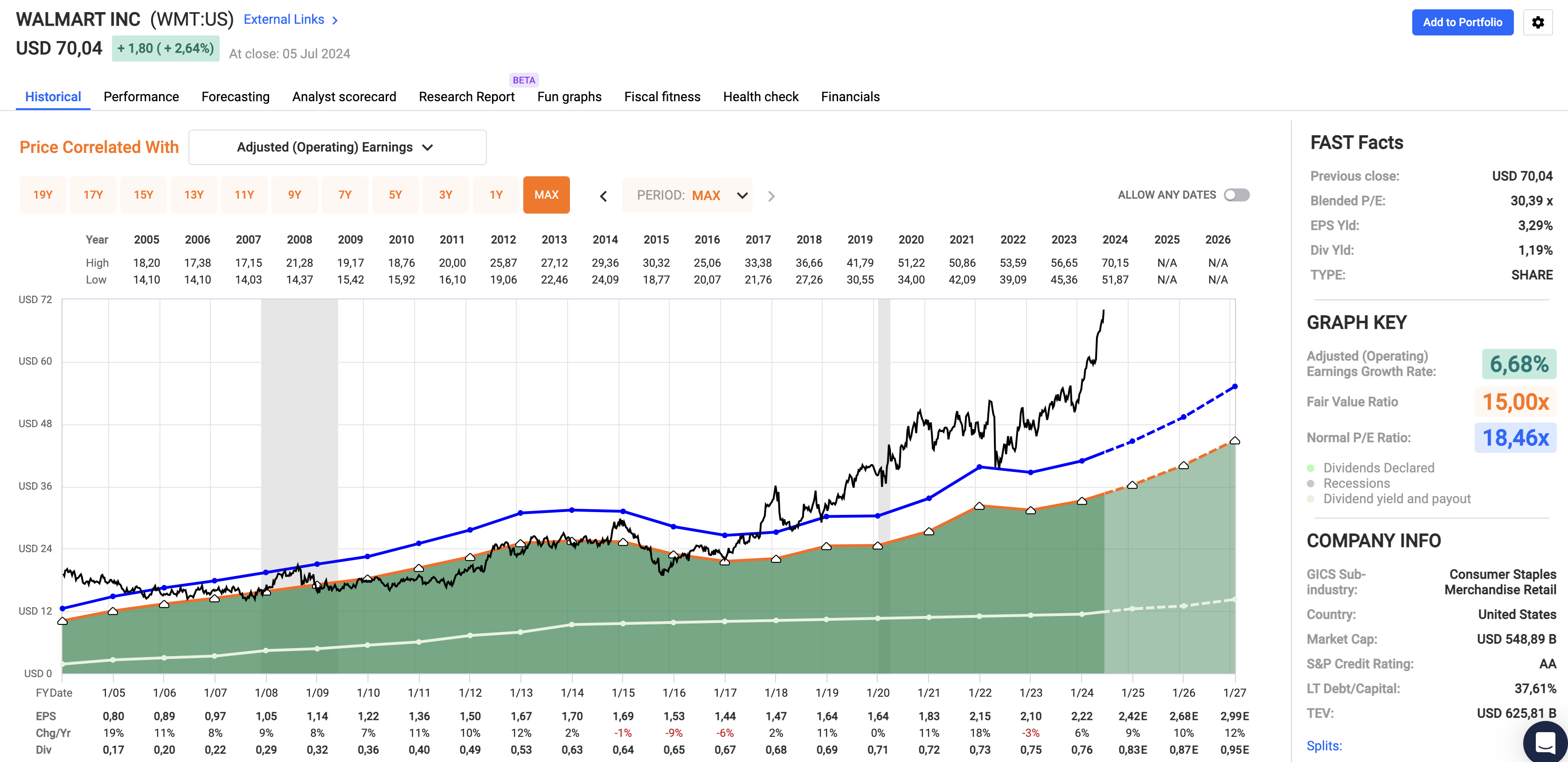 - Walmart’s stock performance has been strong, with a blended P/E ratio of 30.3x and expected EPS growth of 9% in 2025.