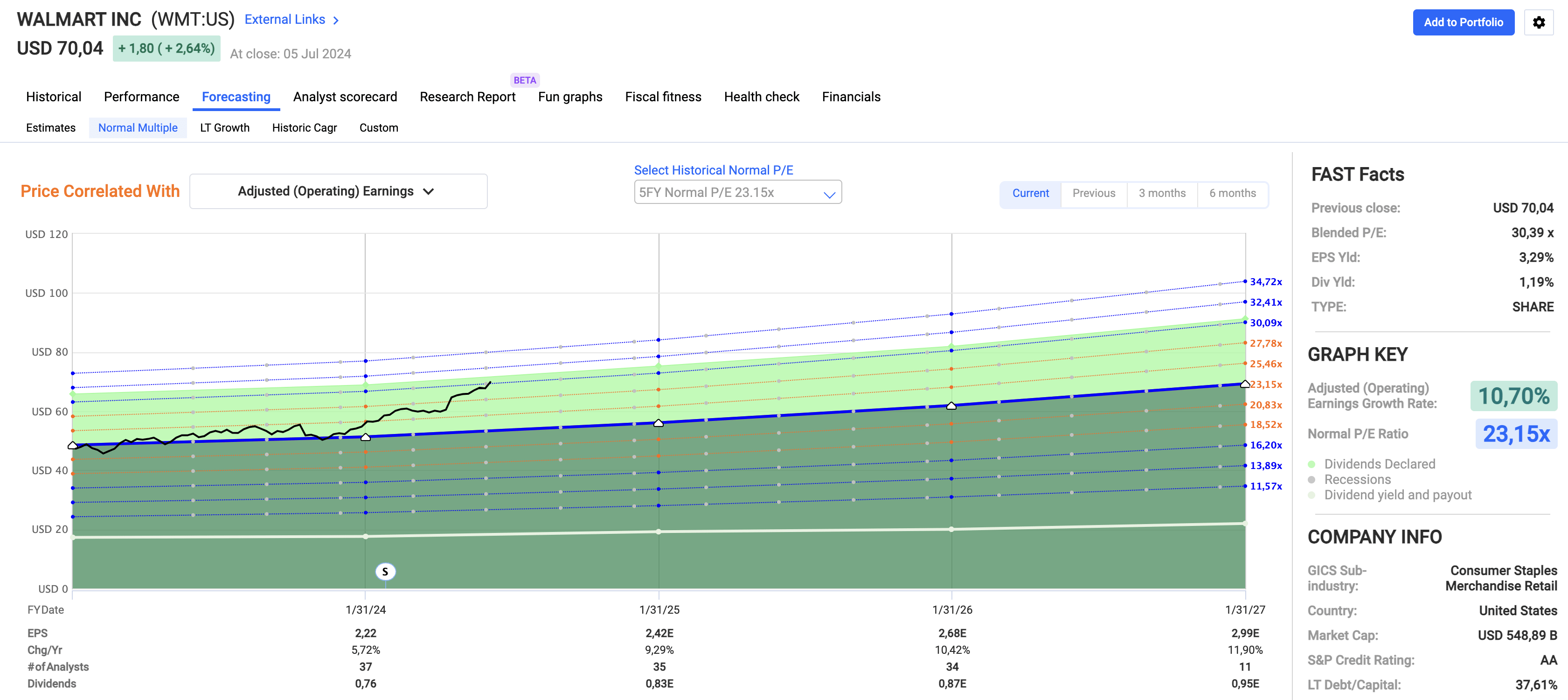 Even using the company’s five-year average P/E ratio of 23.2x would imply that WMT shares are currently trading at fair value.