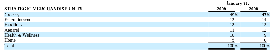 During the 2008 recession, revenues grew 8.7%, given that groceries now account for a larger share of WMT’s business than in 2008, a 12% growth appears reasonable.