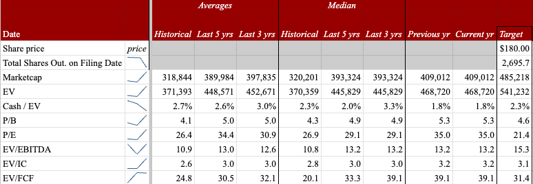 I value WMT’s share at $180 based on a DCF valuation, using a 6.5% cost of capital derived from a revenue-weighted unlevered beta of 0.77. In the event of a recession, I anticipate revenues to grow by approximately 12%. During the last three recessions, revenue growth ranged from 9% to 29%.