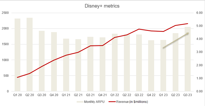 - Disney’s streaming business has faced a slowdown, with a decline in subscribers, but revenue and average revenue per user (ARPU) have increased.