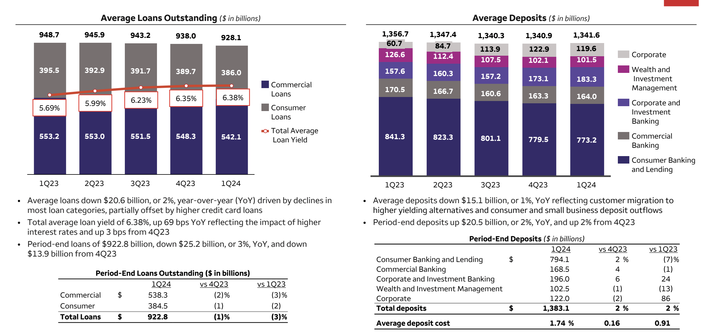 The company has also managed to keep average deposits quite high at $1.34 trillion, down 1% YoY. That’s despite substantial consumer deposit declines from depositors migrating to higher yield opportunities. The company has managed to grow deposits in other segments of its business and has managed to grow overall deposits QoQ despite consumer migration.