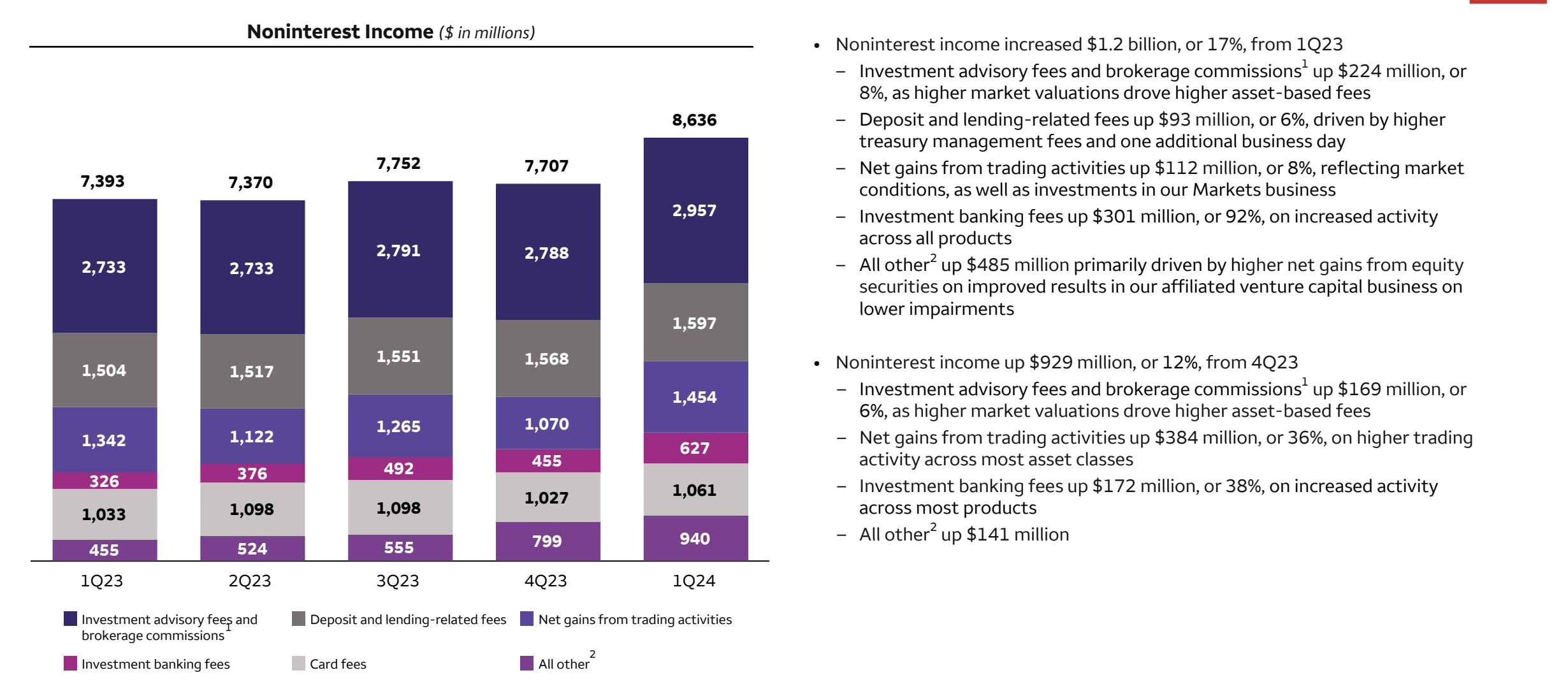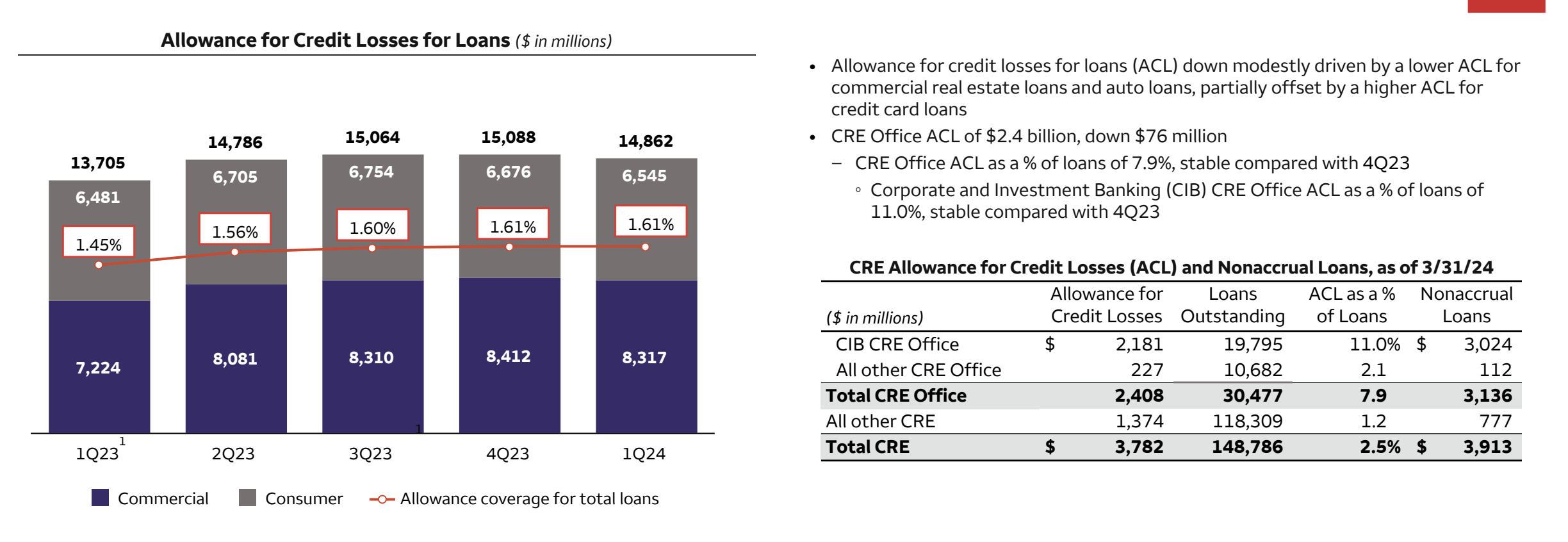 The company’s total allowance for credit losses for loans has ticked up modestly, but continues to stay fairly steady at 1.6% or $14.8 billion, roughly evenly split across commercial and consumer loans. The stable CRE office ACL and decline QoQ show how that black swan event is seeing lower impact, which will help keep overall credit allowances lower.