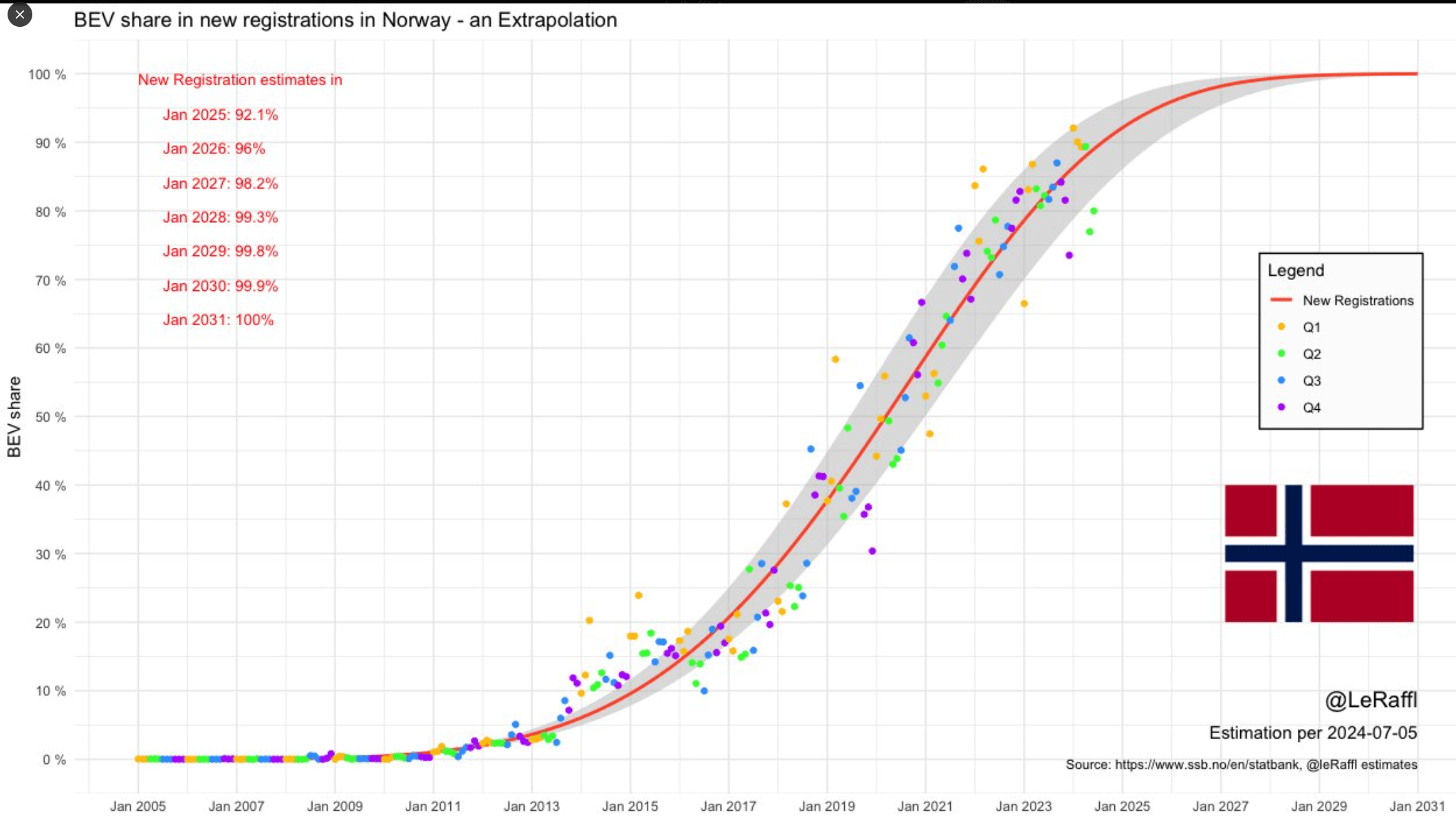 Now, Norway is a bit of an outlier, as they are so far ahead of the rest of the world in EV, but it might show the shape of things to come.