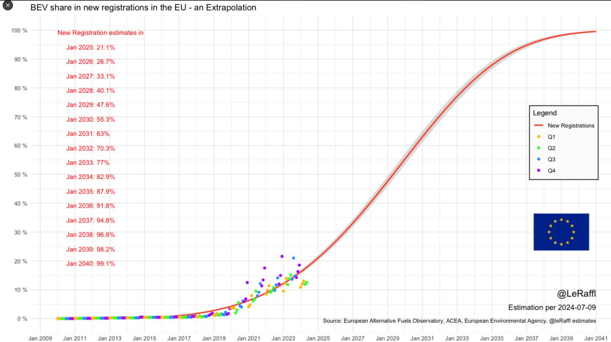 Much has been written about the EV and its impending demise. Are the opinions grounded in reality? I would say no. Some of it is just good old-fashioned sensationalism, and some is election related. Something of note to observe, but EV adoption in Europe is increasing (along with China and North America). It is one thing to read about how the overall EV share in Europe is around 19% adoption, but it is another to be able to visualize it by country.