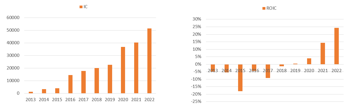 ROIC is a snapshot of last year’s earnings (before interest payments) divided by the invested capital (the assets required to run the business). By focusing on return on incremental invested capital, however, it becomes apparent that Tesla’s returns are very high. The delta in invested capital from 2021 to 2022 was $11 billion, while operating profits after tax (NOPAT) grew by $6 billion, resulting in an impressive incremental return on invested capital of 55%, which is above that of Apple’s ROIC.
