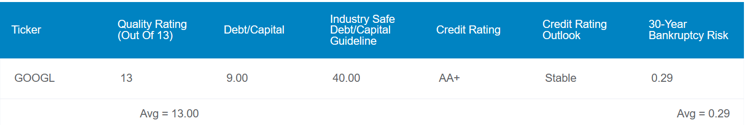 • Google’s impressive liquidity earns it a AA+ credit rating from S&P on a stable outlook.