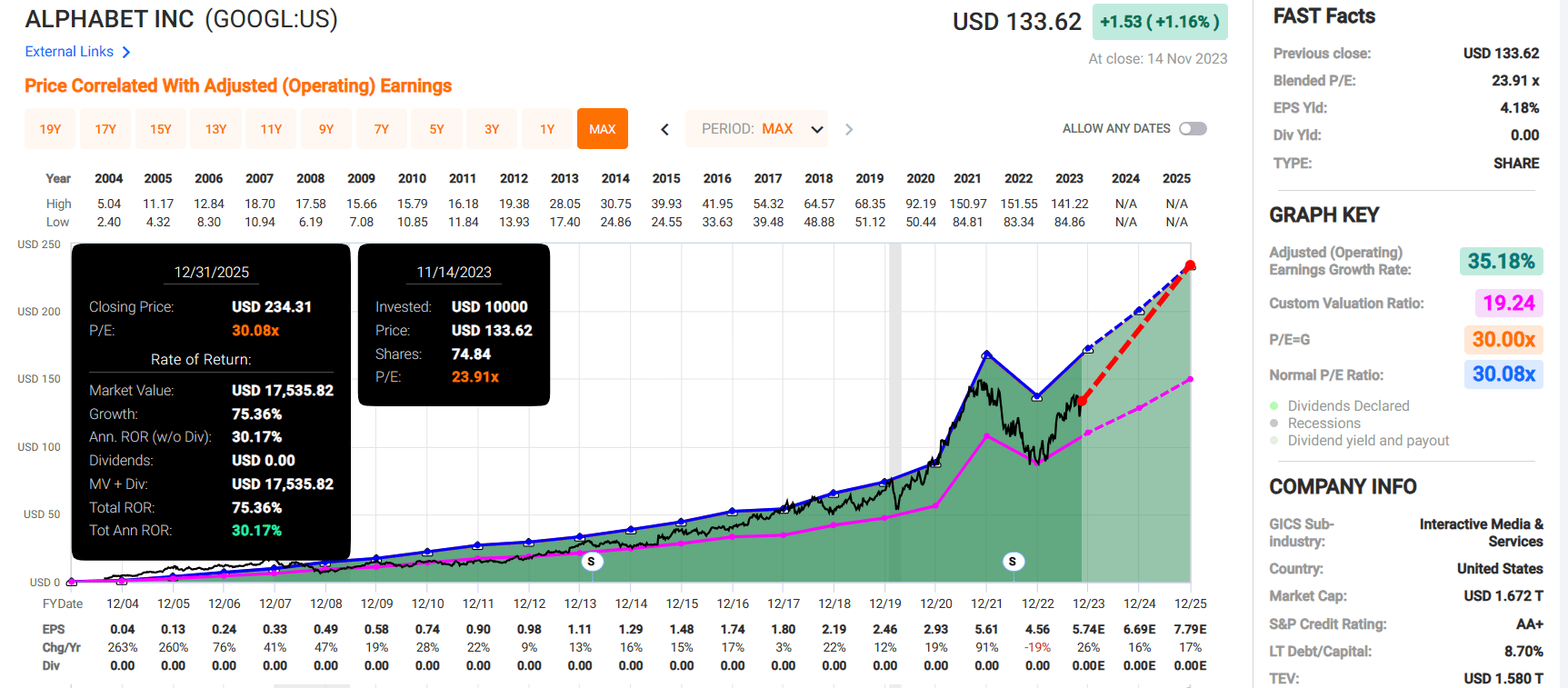 • Google’s 75% total return potential could nearly quadruple the S&P 500 through 2025 and double the index over the next 10 years.
