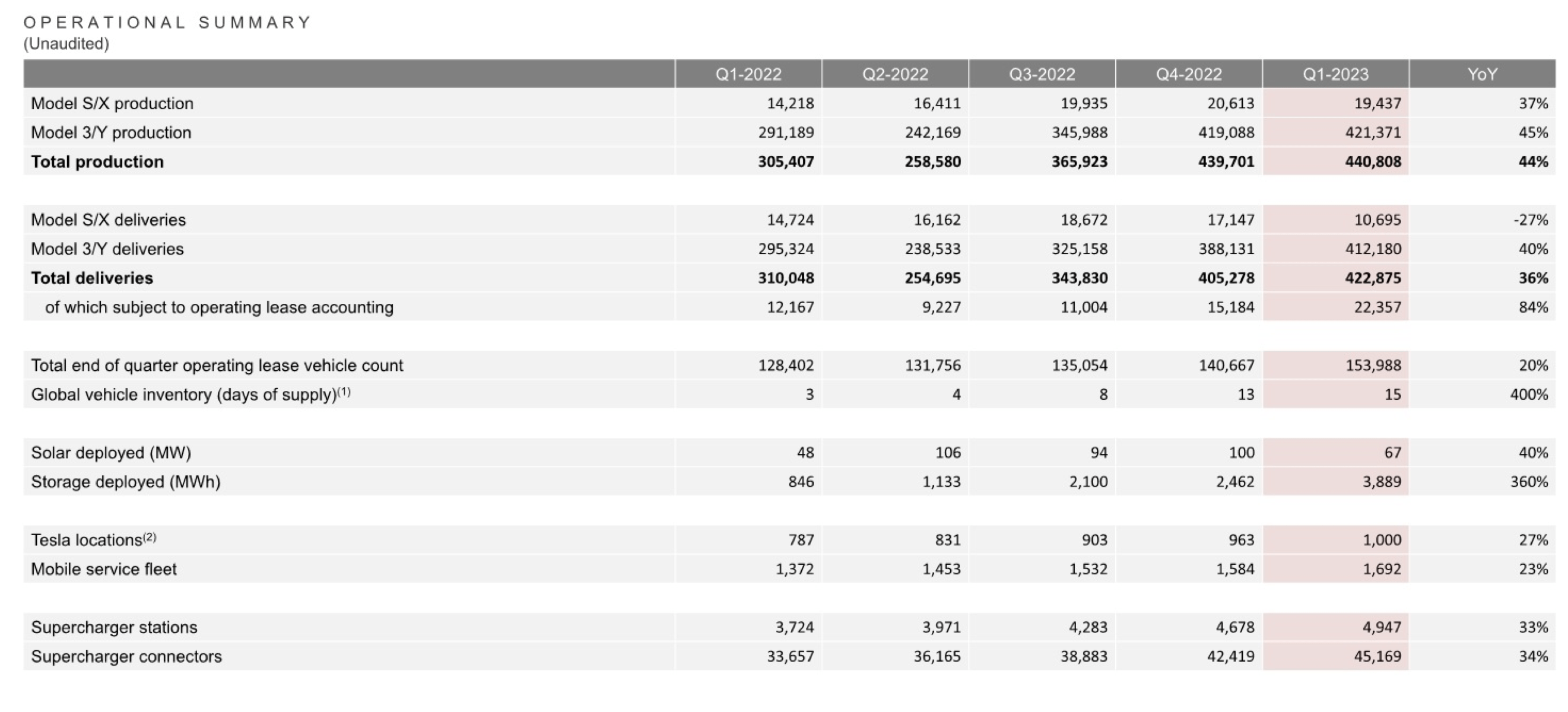 YoY production, deliveries, and other metrics illustrate significant YoY growth, resilience, and strength. Remarkably, Tesla increased total production by a staggering 44% YoY. Total lease vehicles increased by 84% YoY, illustrating a healthy trend toward leasing Tesla vehicles, a dynamic that should continue benefitting Tesla long-term.