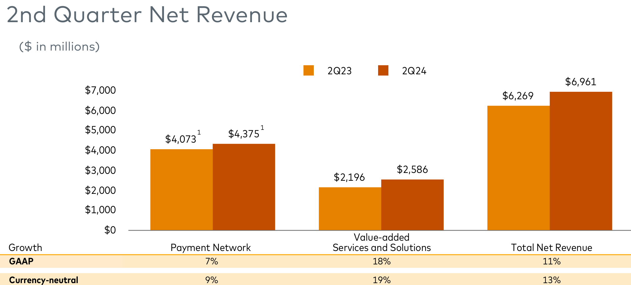 What investors now care about regarding Mastercard is the growth of its services. Mastercard pleased the market with a 17% increase from this revenue stream, which now makes up around 37% of the total net revenue.
