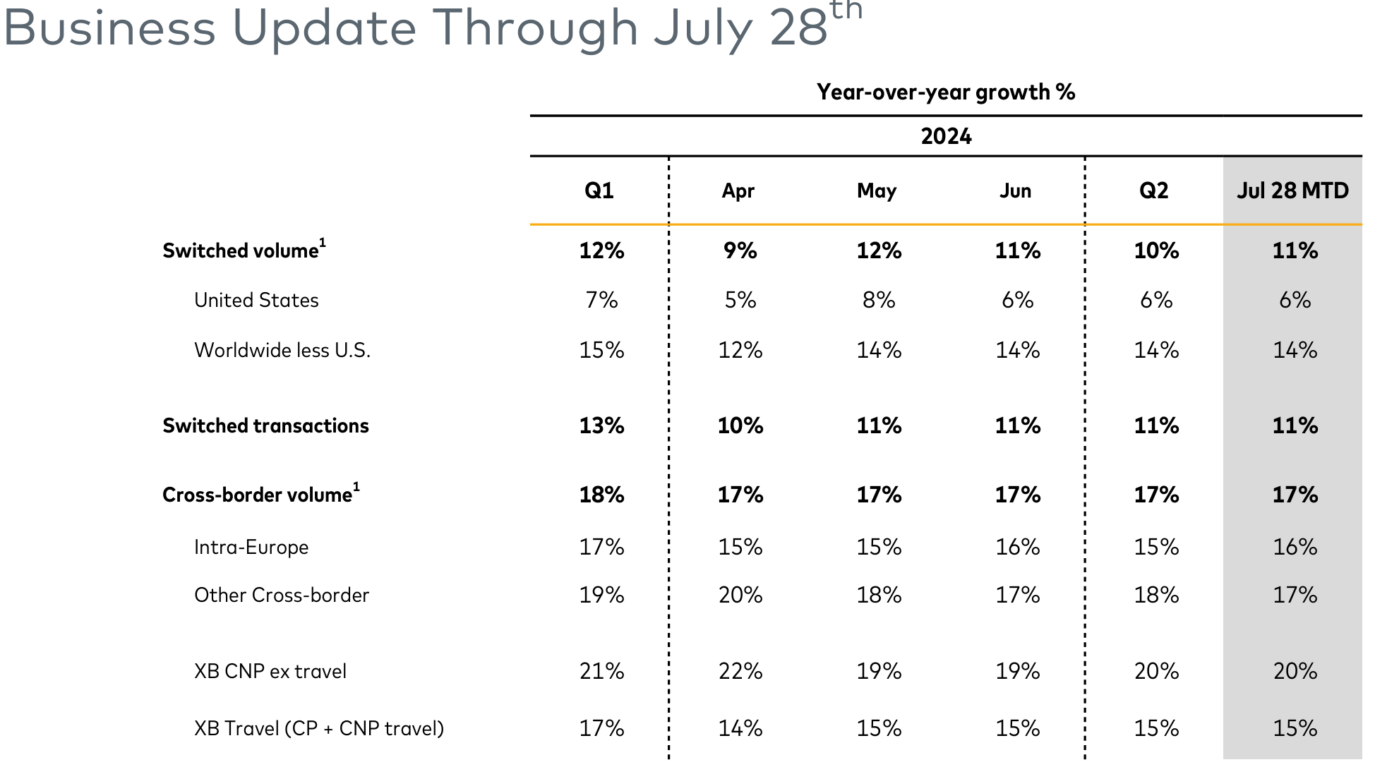 Part of this was confirmed as Mastercard even gave us a snapshot of what happened so far in Q3. Any idea of what the numbers may look like?
