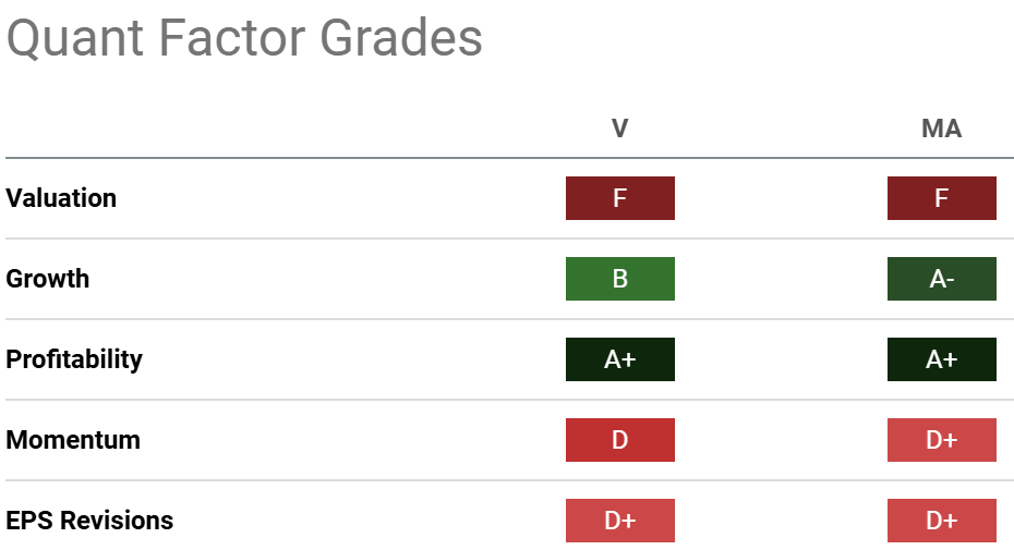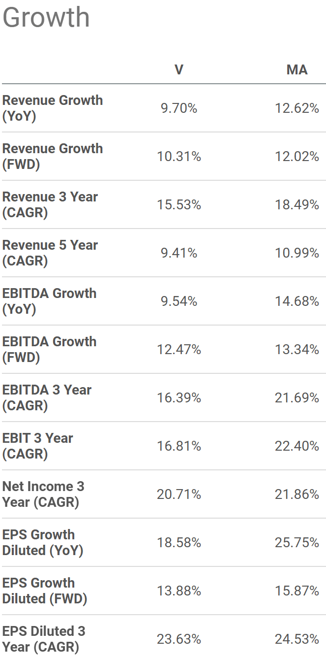 No doubt both companies sport strong numbers, but we see that no matter what the metric, Mastercard is always a bit ahead. This is why Mastercard trades at a higher PE (31 vs. 26) and other higher multiples. But this difference makes sense, as reliable growth has a price.