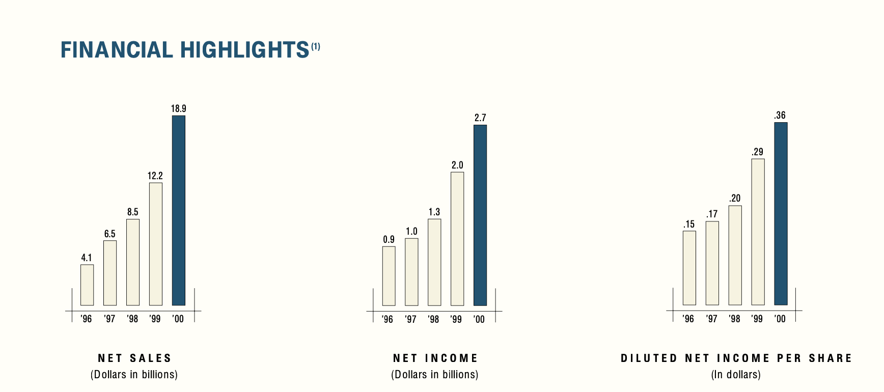 Financials of Cisco from 1996 to 2000 (Cisco annual report)