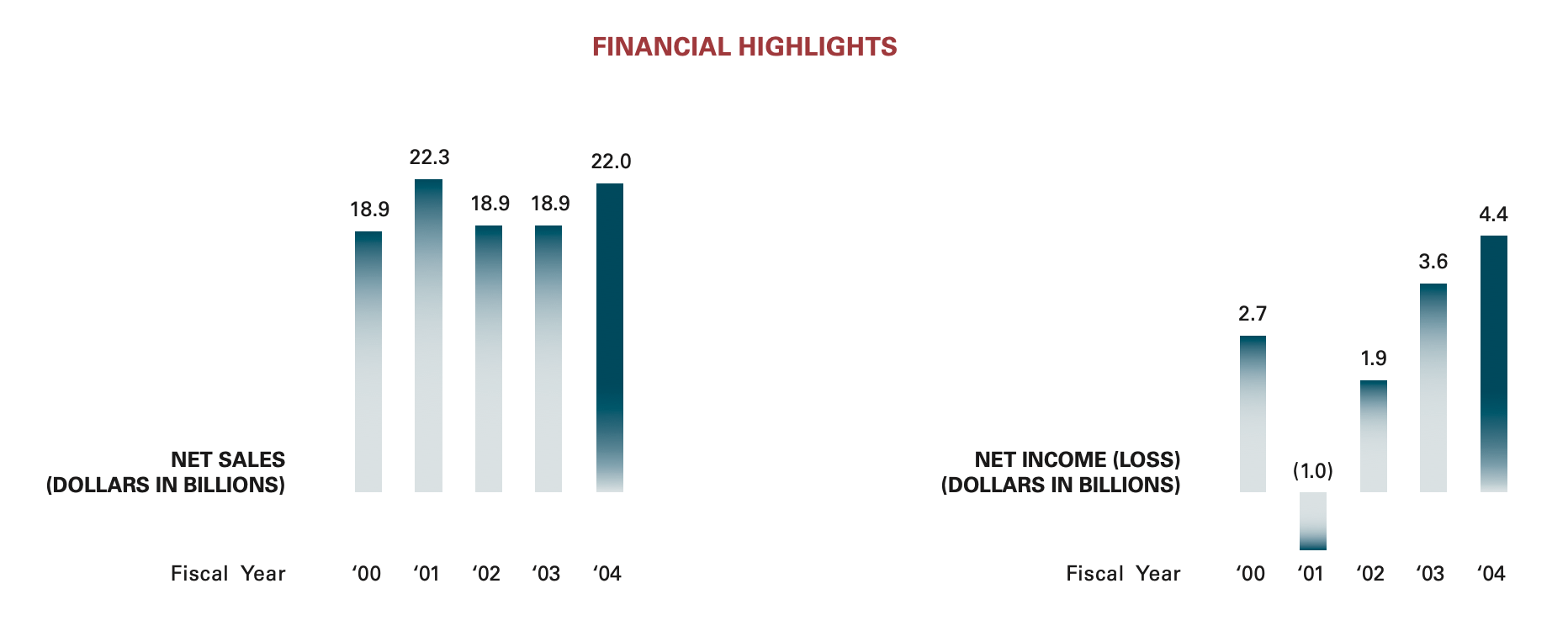 Financials of Cisco from 2000 to 2004 (Cisco annual report)