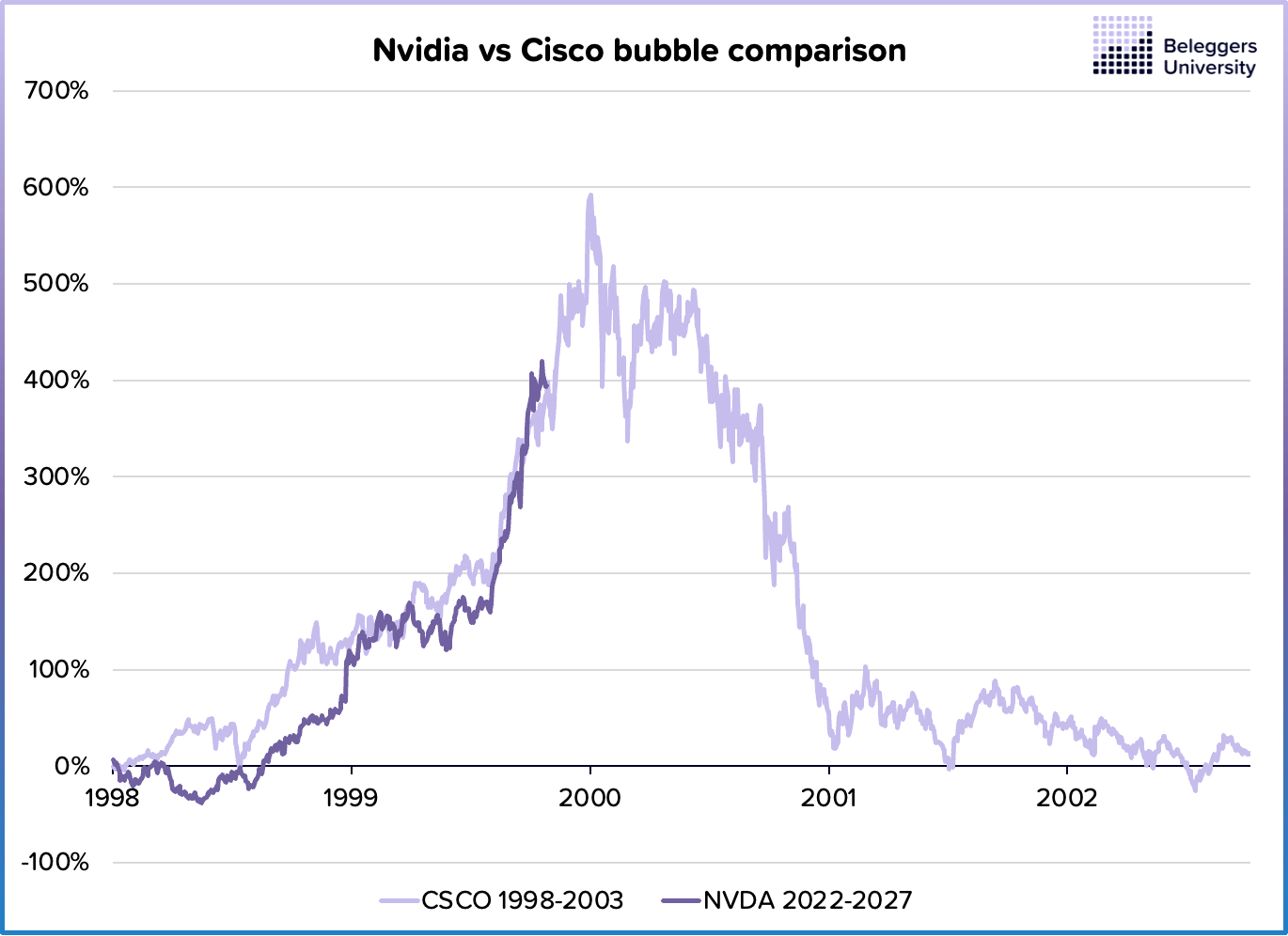 Nvidia 2024 vs Cisco 2000 chart comparison (Beleggers University)