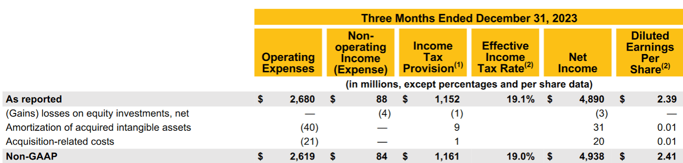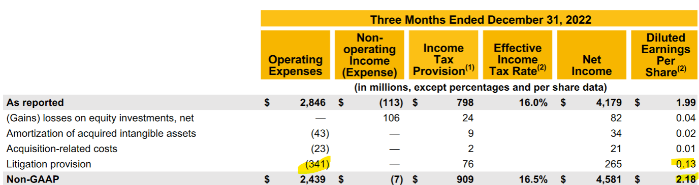 Last year, Visa’s litigation provision of $0.13 a share accounted for the biggest portion of non-GAAP results.