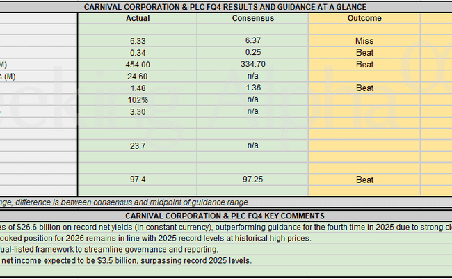 Carnival (CCL) Press Release: Q4 Non-GAAP EPS of $0.34 beats by $0.09. Revenue of $6.33B (+6.6% Y/Y) misses by $40M. Record...