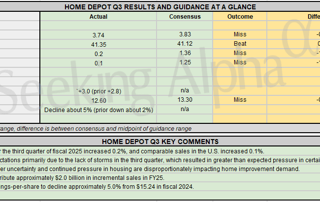 Home Depot press release (HD): Q3 Non-GAAP EPS of $3.74 misses by $0.09. Revenue of $41.35B (+2.8% Y/Y) beats by $230M....
