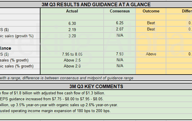 3M press release (NYSE:MMM): Q3 Non-GAAP EPS of $2.19 beats by $0.12. Revenue of $6.3B (+3.3% Y/Y) beats by $50M. GAAP...
