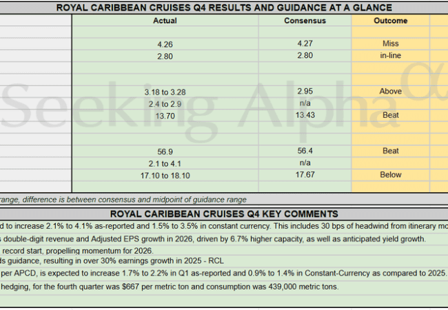 Royal Caribbean Cruises press release (RCL): Q4 Non-GAAP EPS of $2.80 in-line. Revenue of $4.26B (+13.3% Y/Y) misses by...
