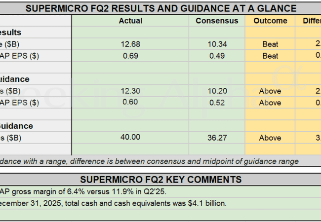 Super Micro Computer press release (SMCI): Q2 Non-GAAP EPS of $0.69 beats by $0.20. Revenue of $12.7B (+122.8% Y/Y) beats...